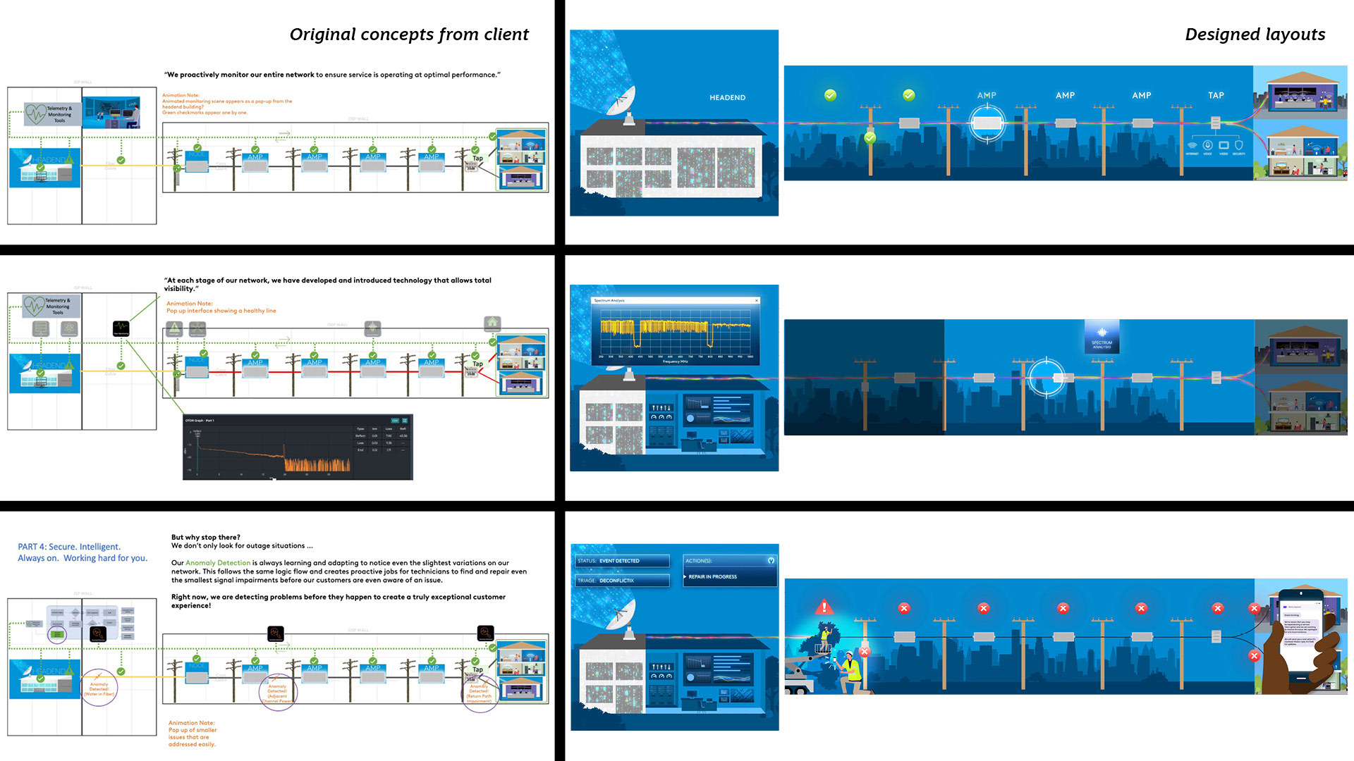 MY ROLE: Comcast clients provided the initial script, storyboard and vector brand assets of people and houses. I designed the additional vector graphics, labels, diagrams and animation to create the final output.