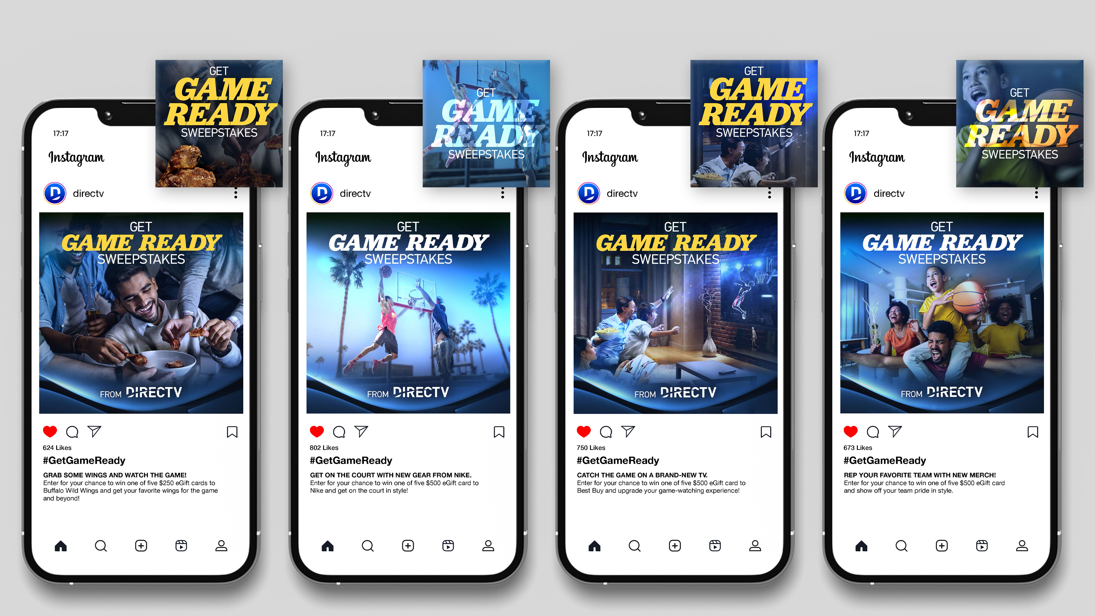 CONTEXT: The Story House collaborated with DirecTV to produce a series of engaging social sweepstakes campaigns. Through still and video posts, customers were encouraged to connect with the brand and participate in themed contests such as Best Summer Yet and Get Game Ready.