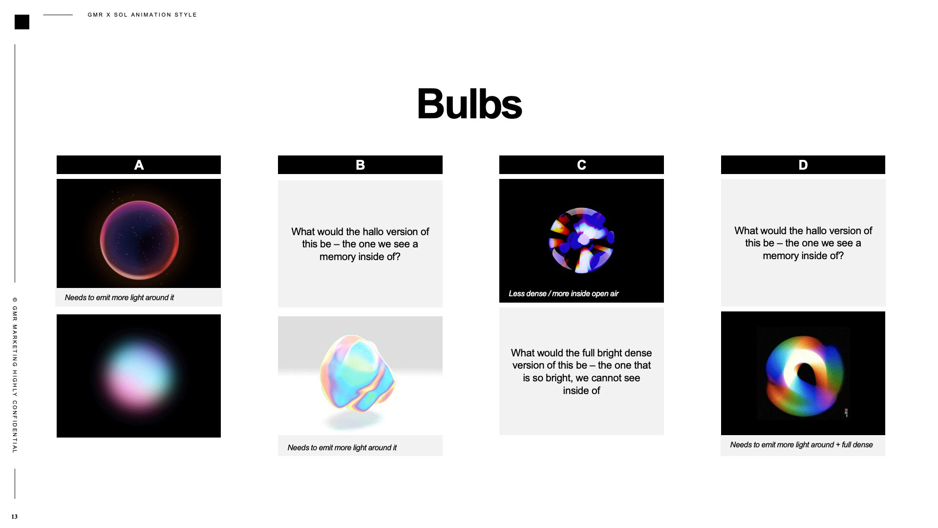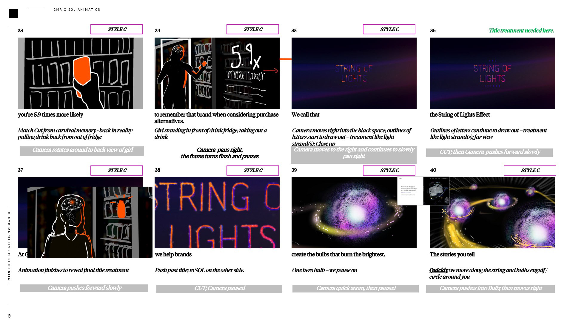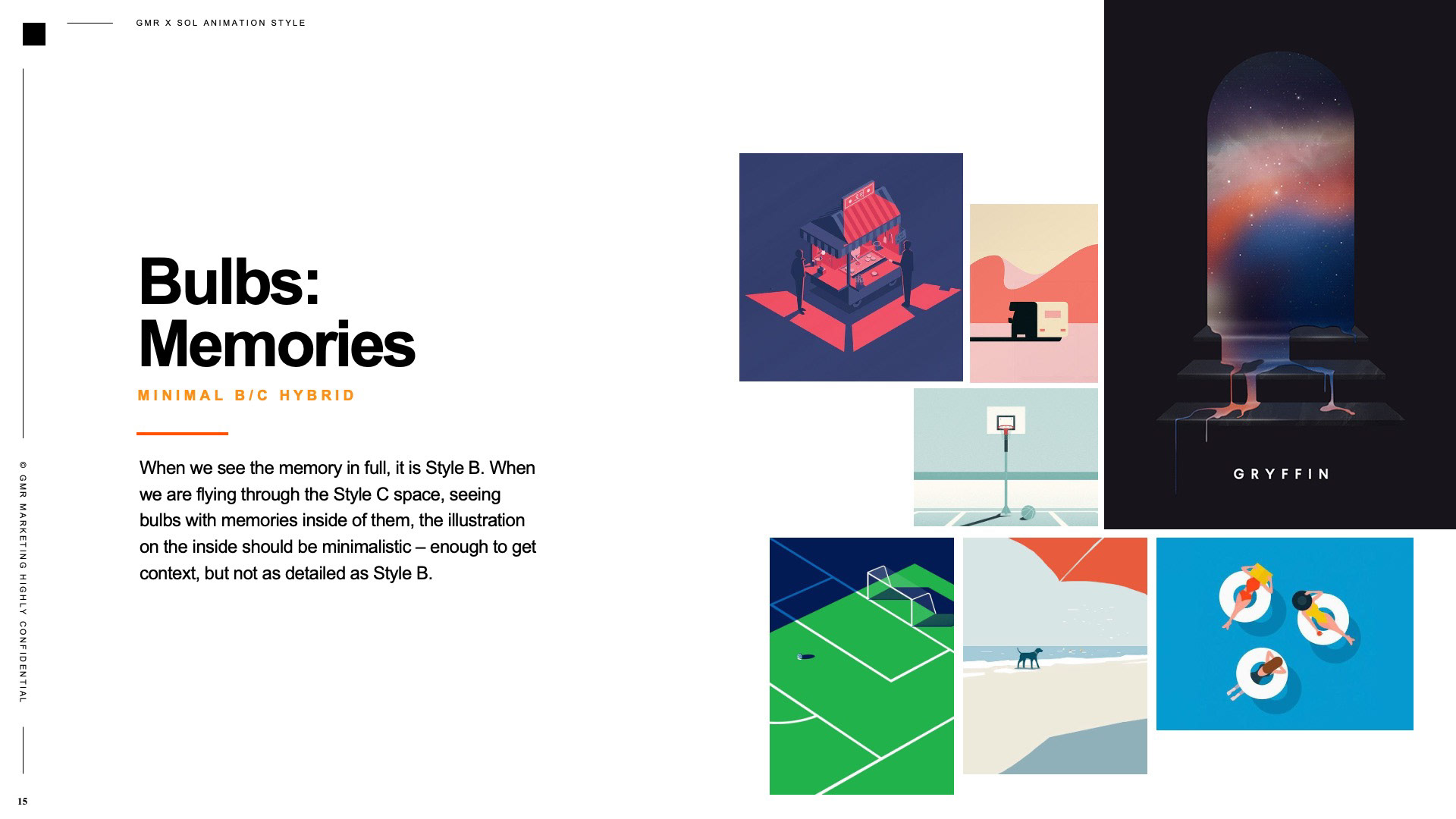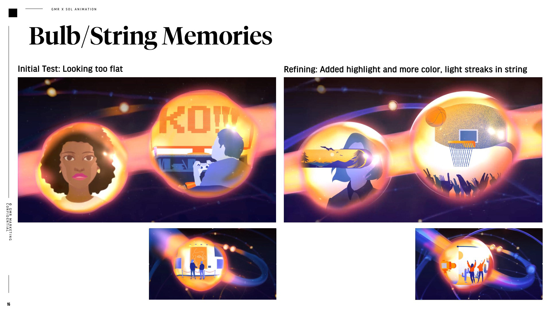 To explain all of the above in way that feels beautiful, interesting and unique, GMR created a metaphor: the string of lights. Simply put, if you think of your life story as a string of lights, each bulb represents a memory. Some bulbs burn brighter, because those moments really meant something. There are gaps, because you can’t remember everything. You carry this string of lights around with you, all the time. At GMR, the goal is to create the bulbs that burn the brightest.