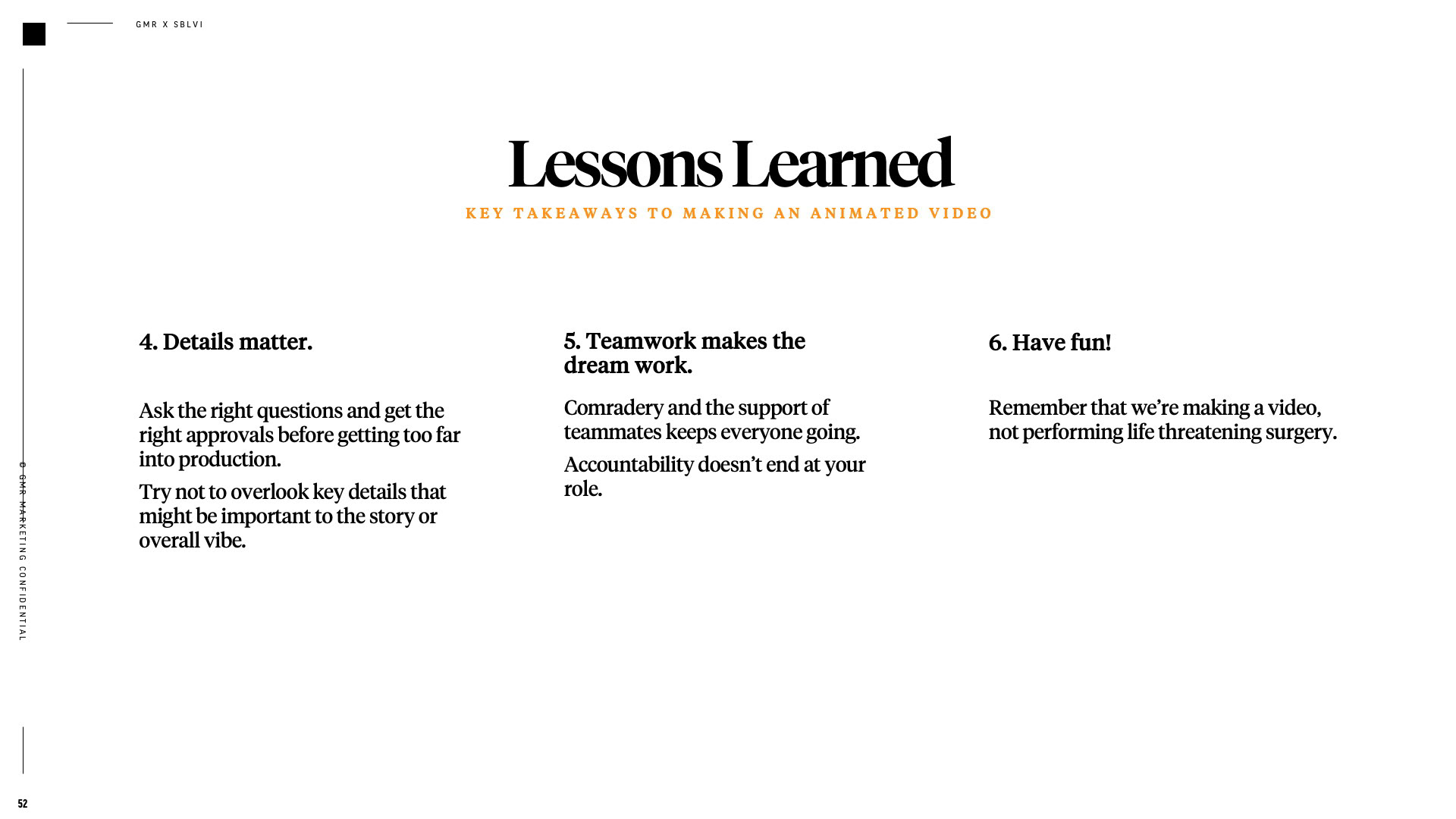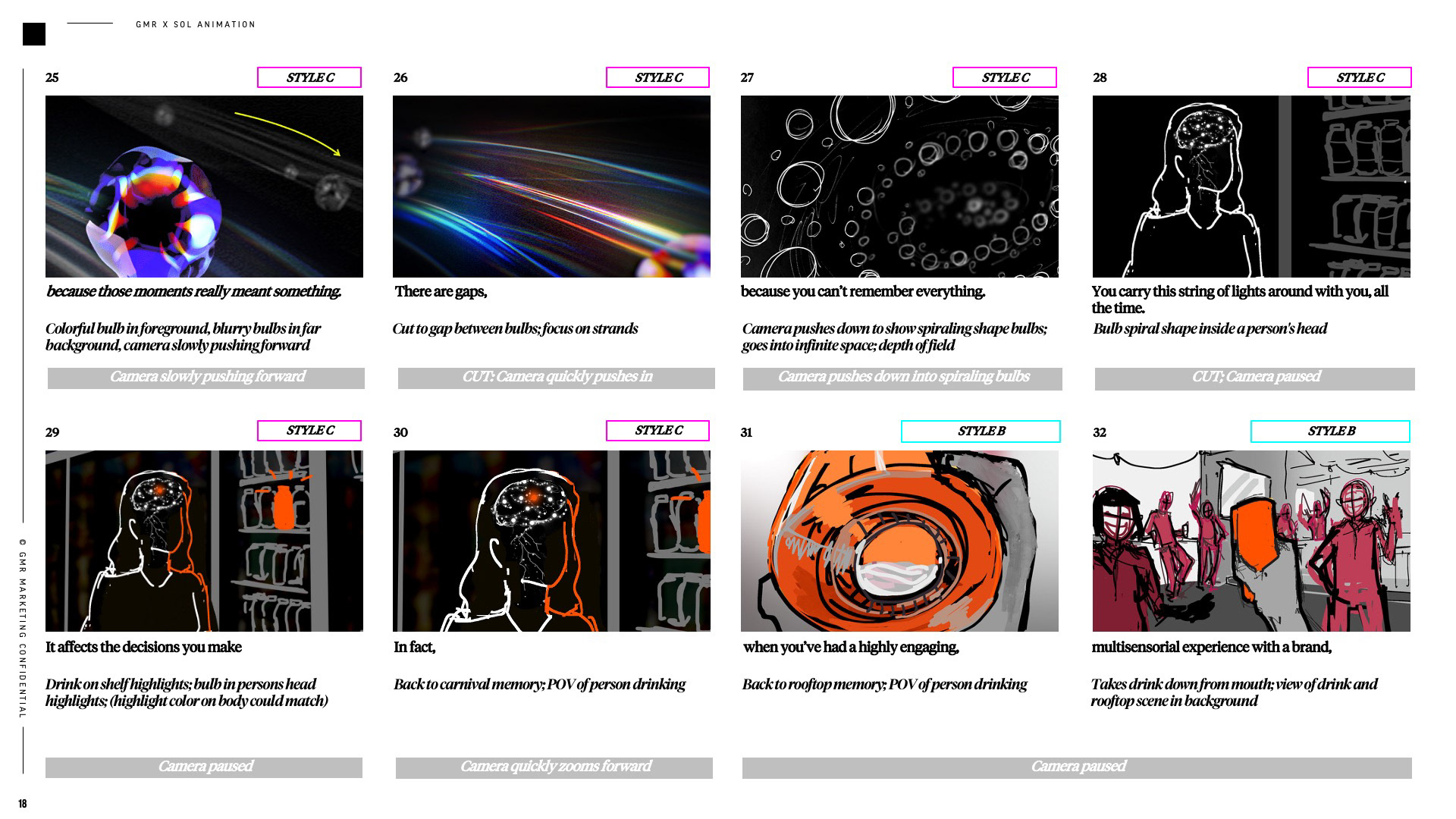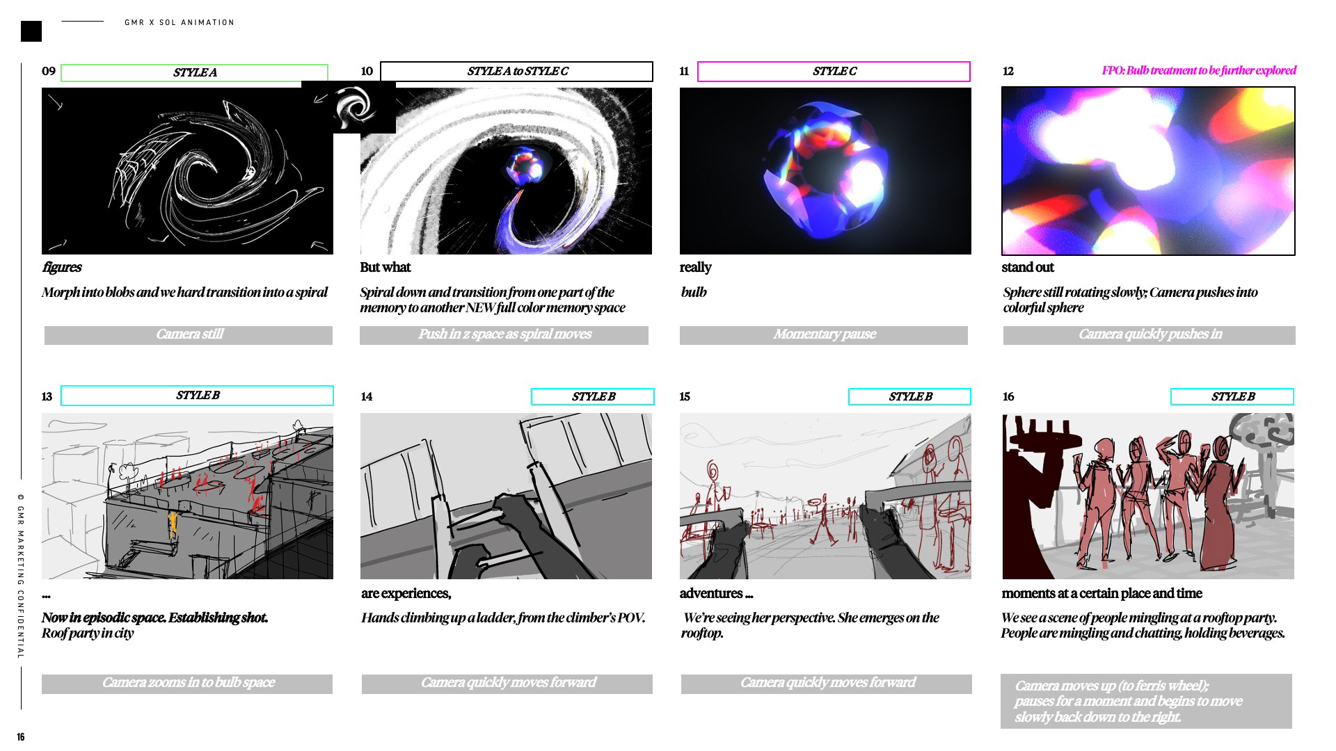 CONTEXT: GMR creates experiences for brands. They don’t just tell stories to passive audiences; they make immersive worlds, drop people inside, and let them explore. If you make a relevant, multisensorial experience that’s compelling enough, it will become a lasting memory. And it turns out, if you have a personal memory of a brand experience, you’re more likely to purchase or share.