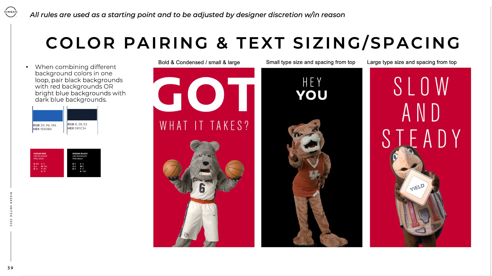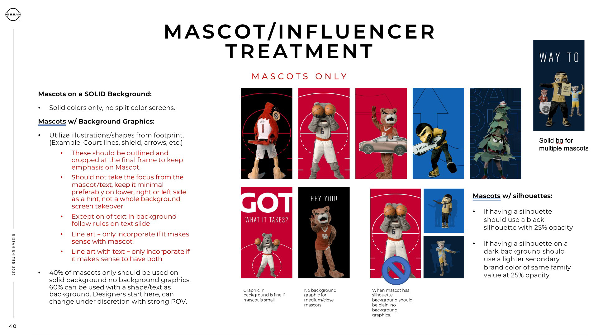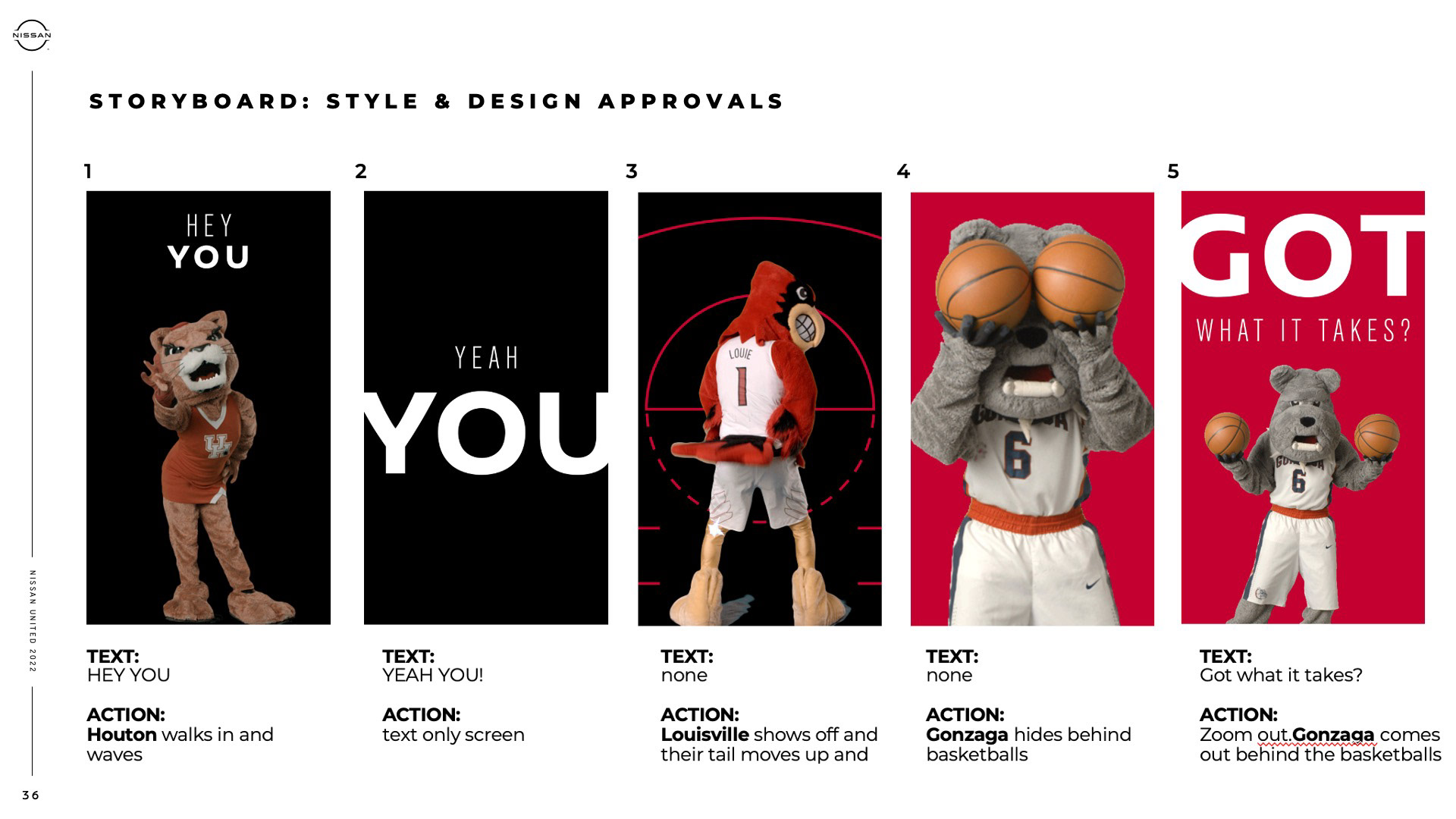 TASK: Create a series of videos throughout both men's and women's activation spaces that incorporates mascot footage, messaging, and graphics.